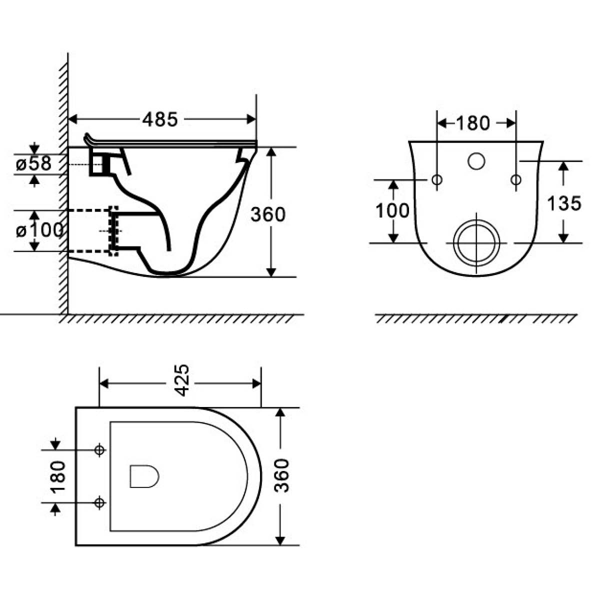 Szennyvíz bekötő átalakító modul Ditte és Clement álló és monoblokkos WC-hez, hátsó kifolyásúról alsó kifolyásúra.